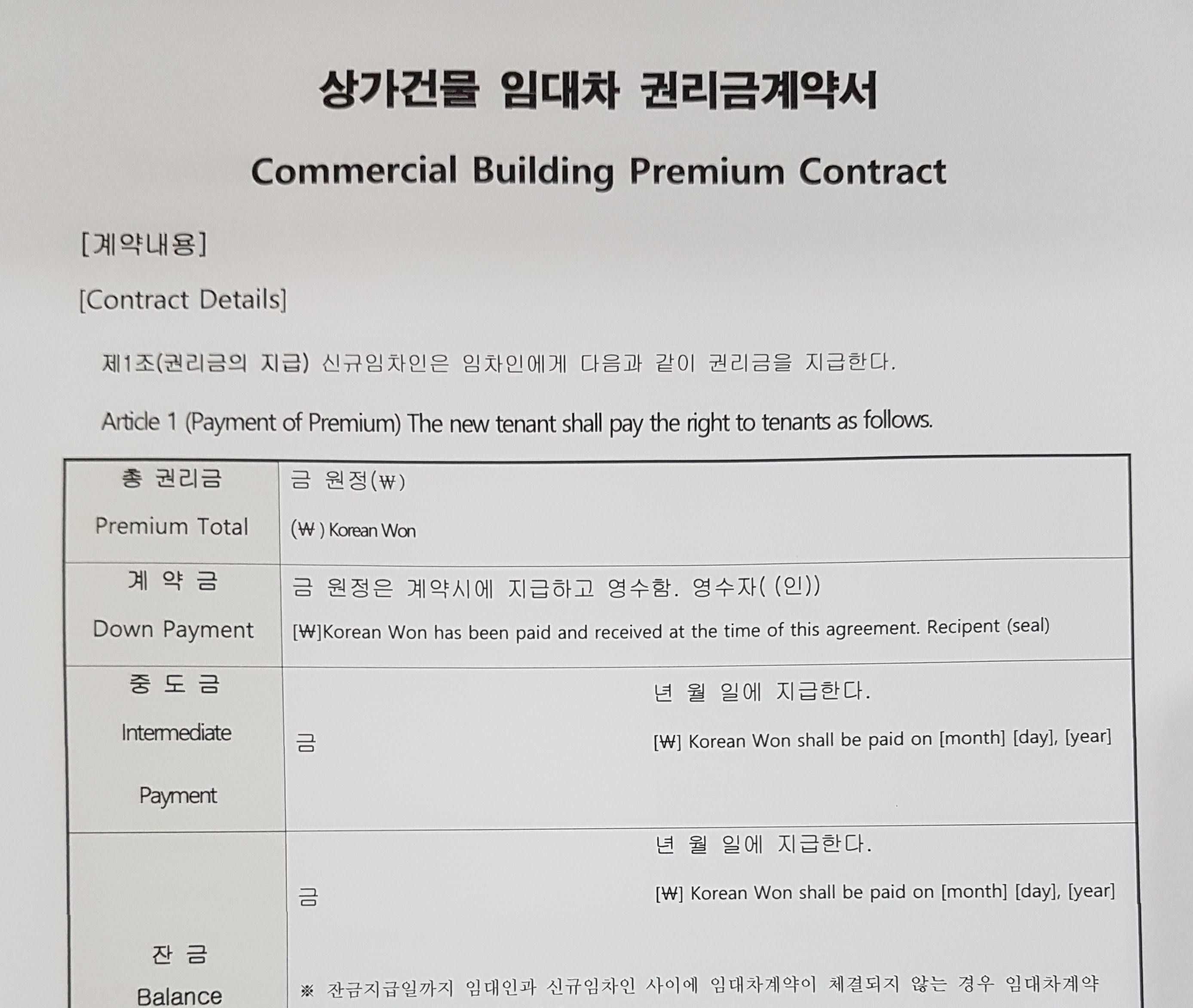 Commercial Building Premium Contract - ENG -KOR -4p