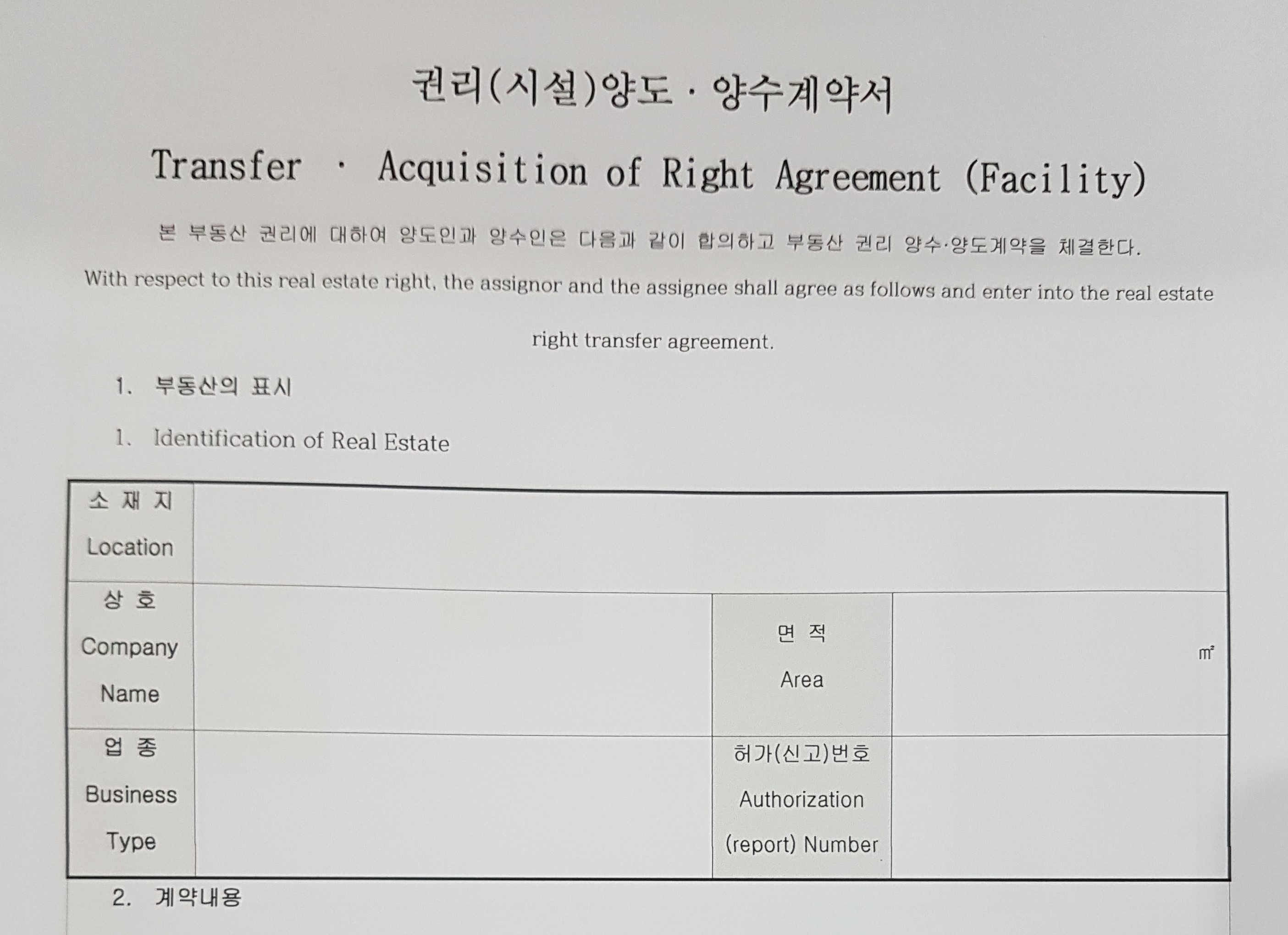 Transfer · Acquisition of Right Agreement (Facility) - LEASE AGREEMENT -ENG-KOR-4p