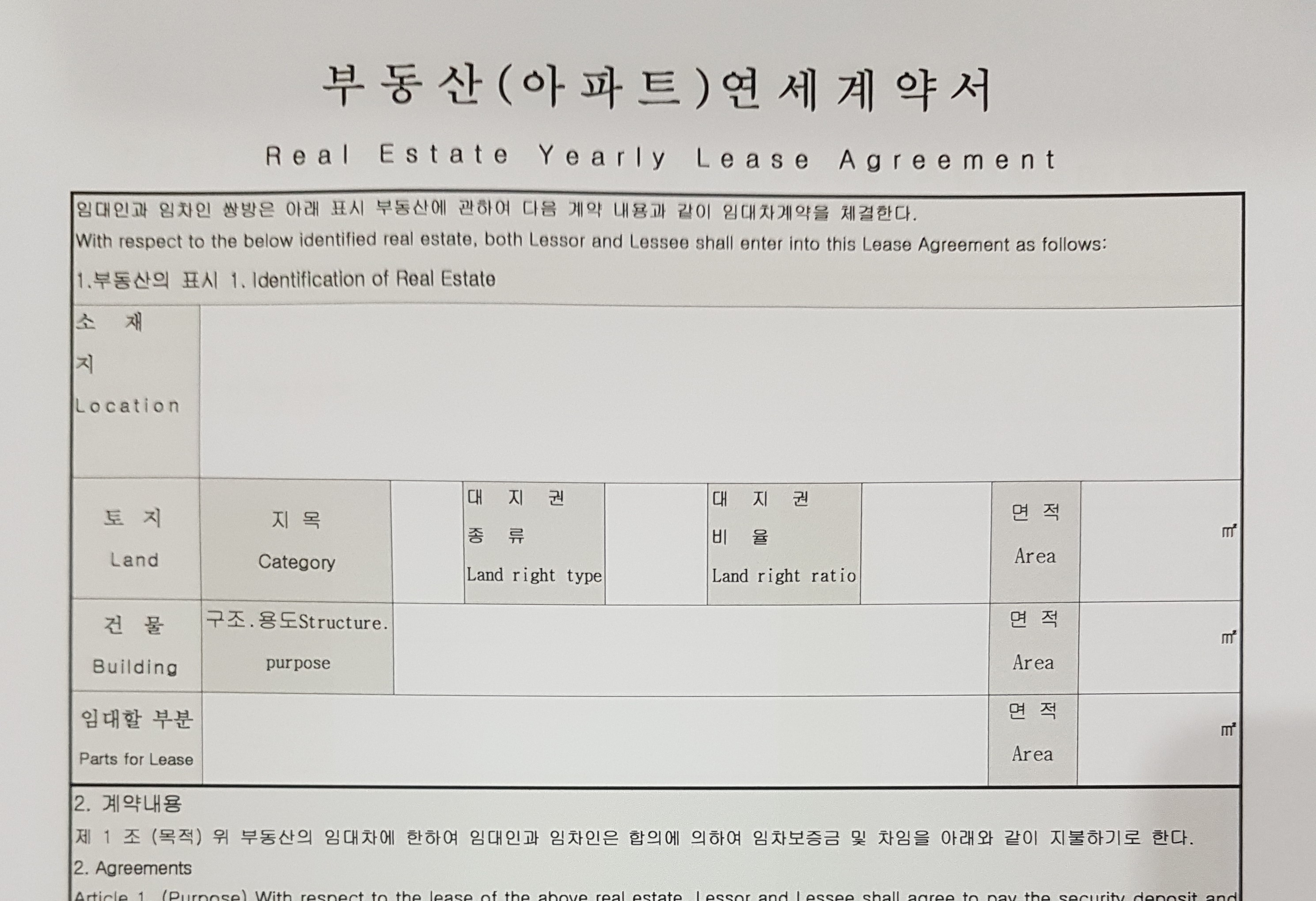 Apartment - LEASE AGREEMENT -Advance payment -ENG -KOR -3p
