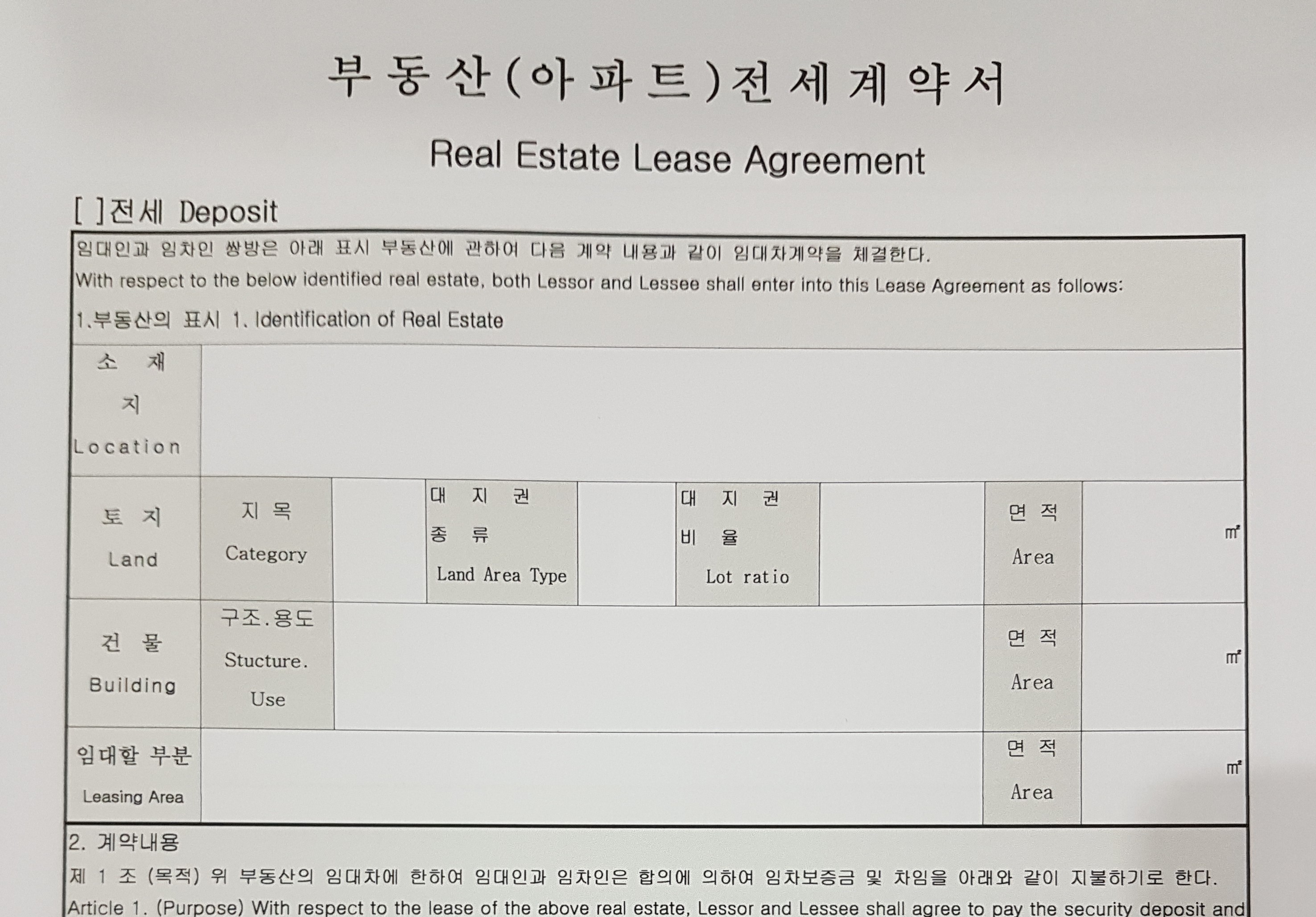 Apartment - LEASE AGREEMENT - Jeonse -ENG -KOR -3p