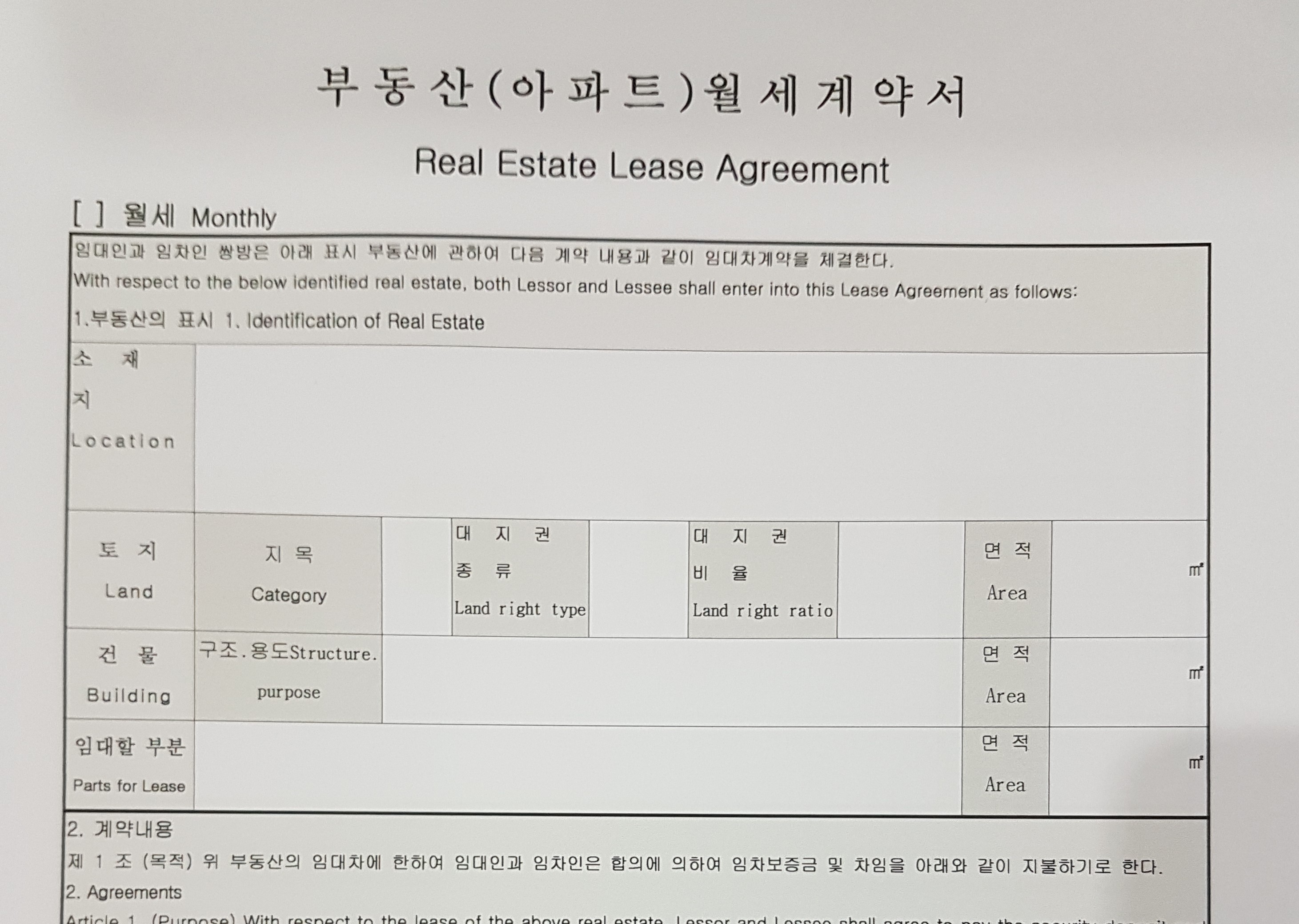 Apartment - LEASE AGREEMENT - Monthly -ENG -KOR -3p