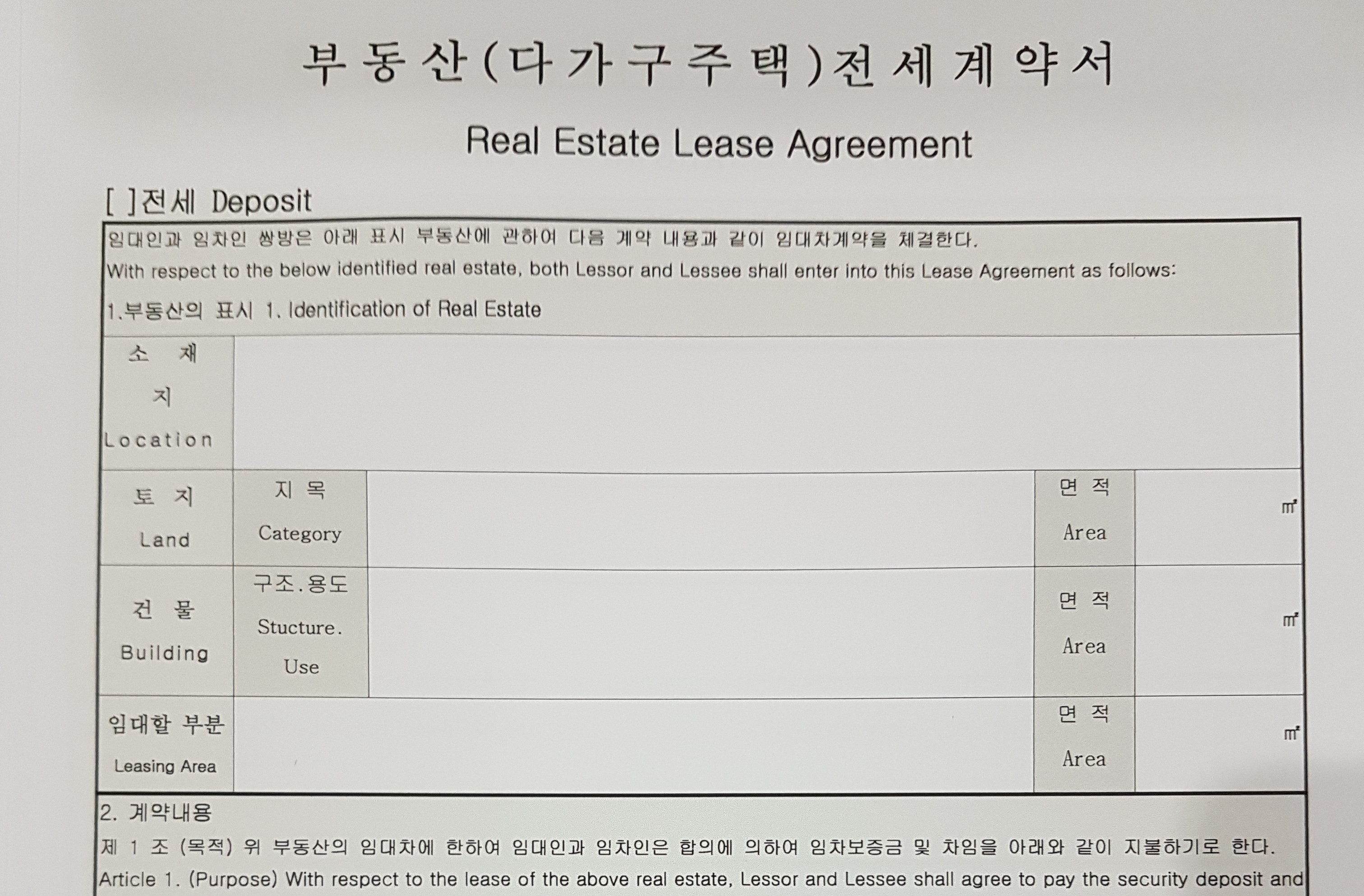 House - LEASE AGREEMENT - Jeonse -ENG -KOR -3p
