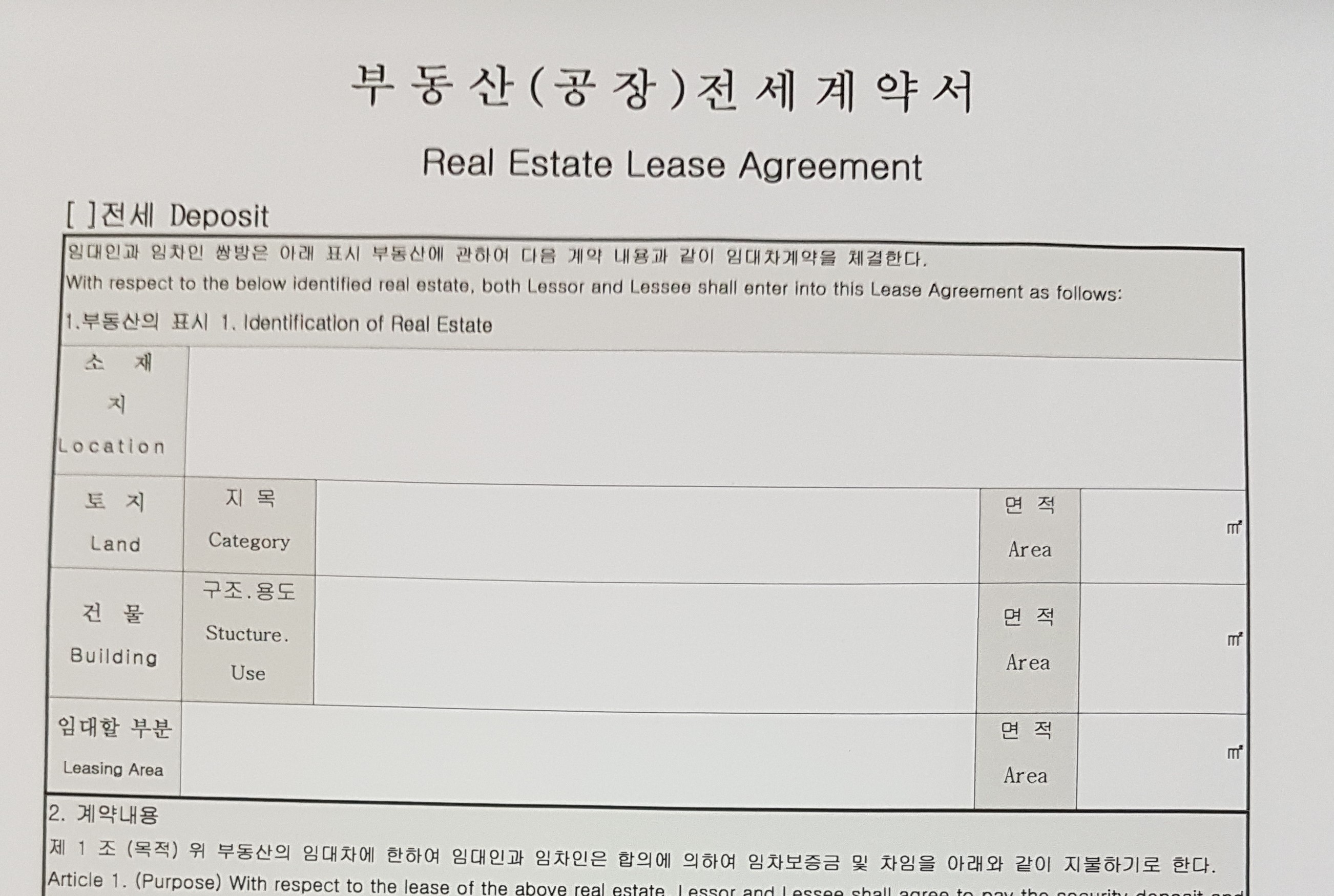 Factory - LEASE AGREEMENT - Jeonse - Eng - Kor- 3p