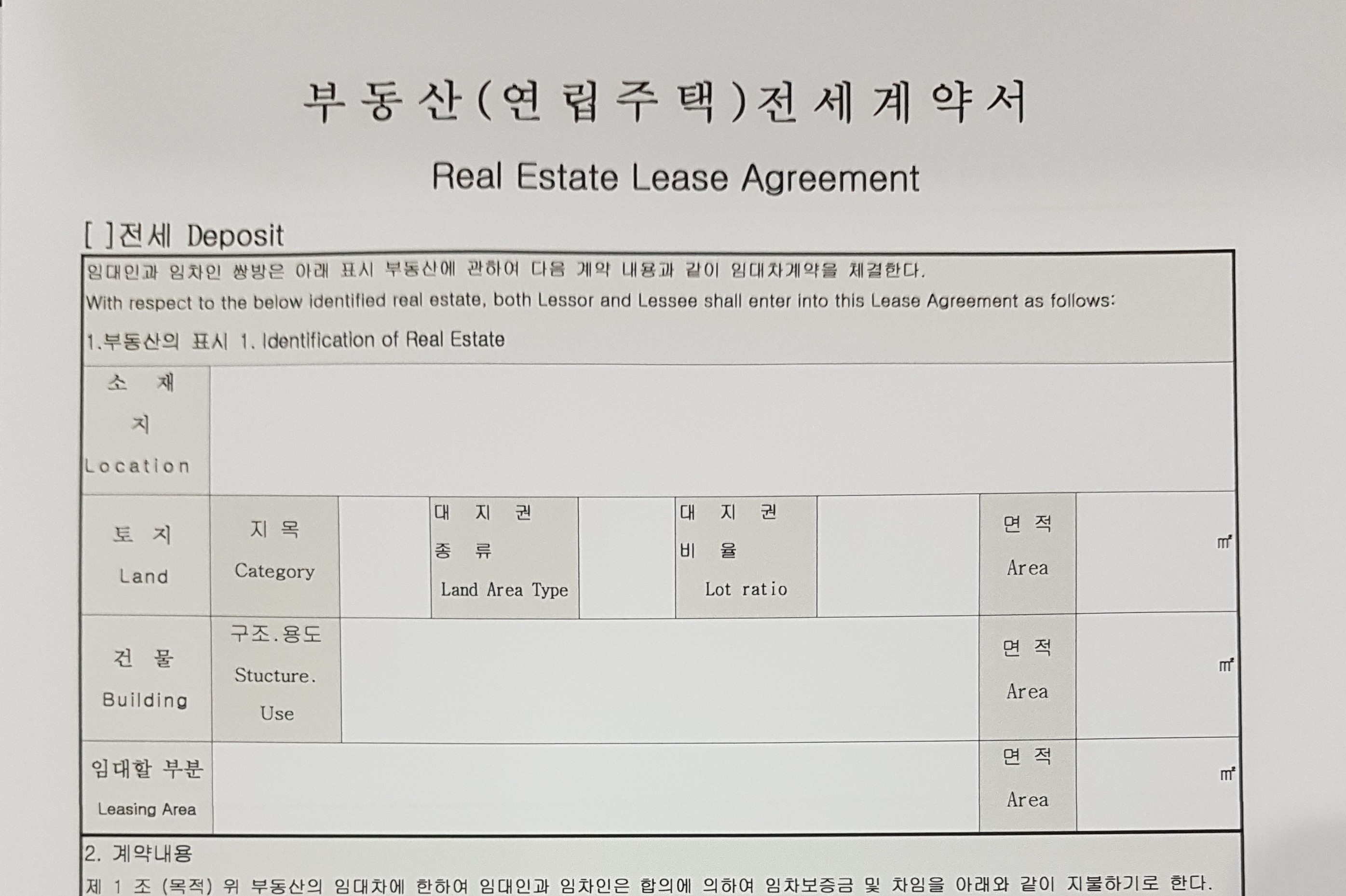 Townhouse- LEASE AGREEMENT -Jeonse - ENG -KOR -3p