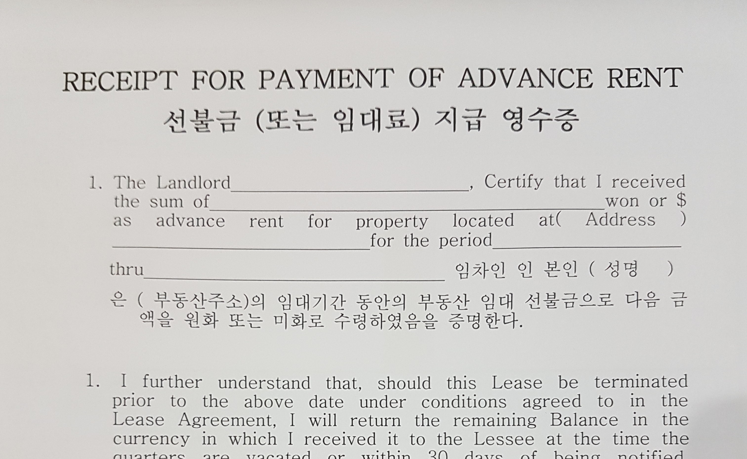 RECEIPT FOR PAYMENT OF ADVANCE RENT - Eng - Kor