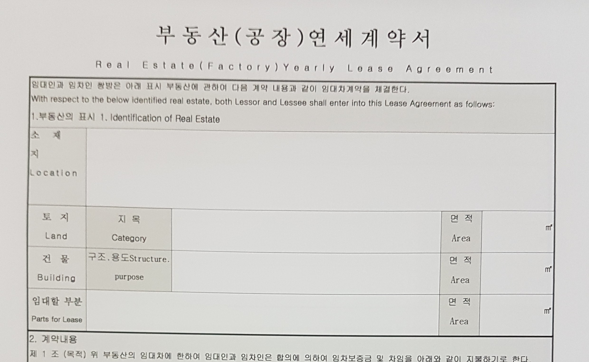 Factory - Yearly Lease Agreement - ENG - KOR -3p