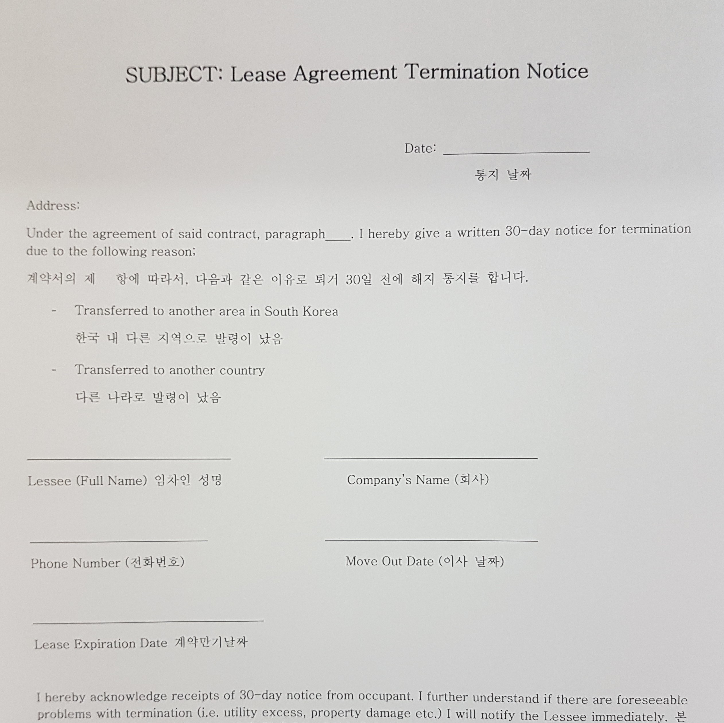 Termination Notice - Eng - Kor
