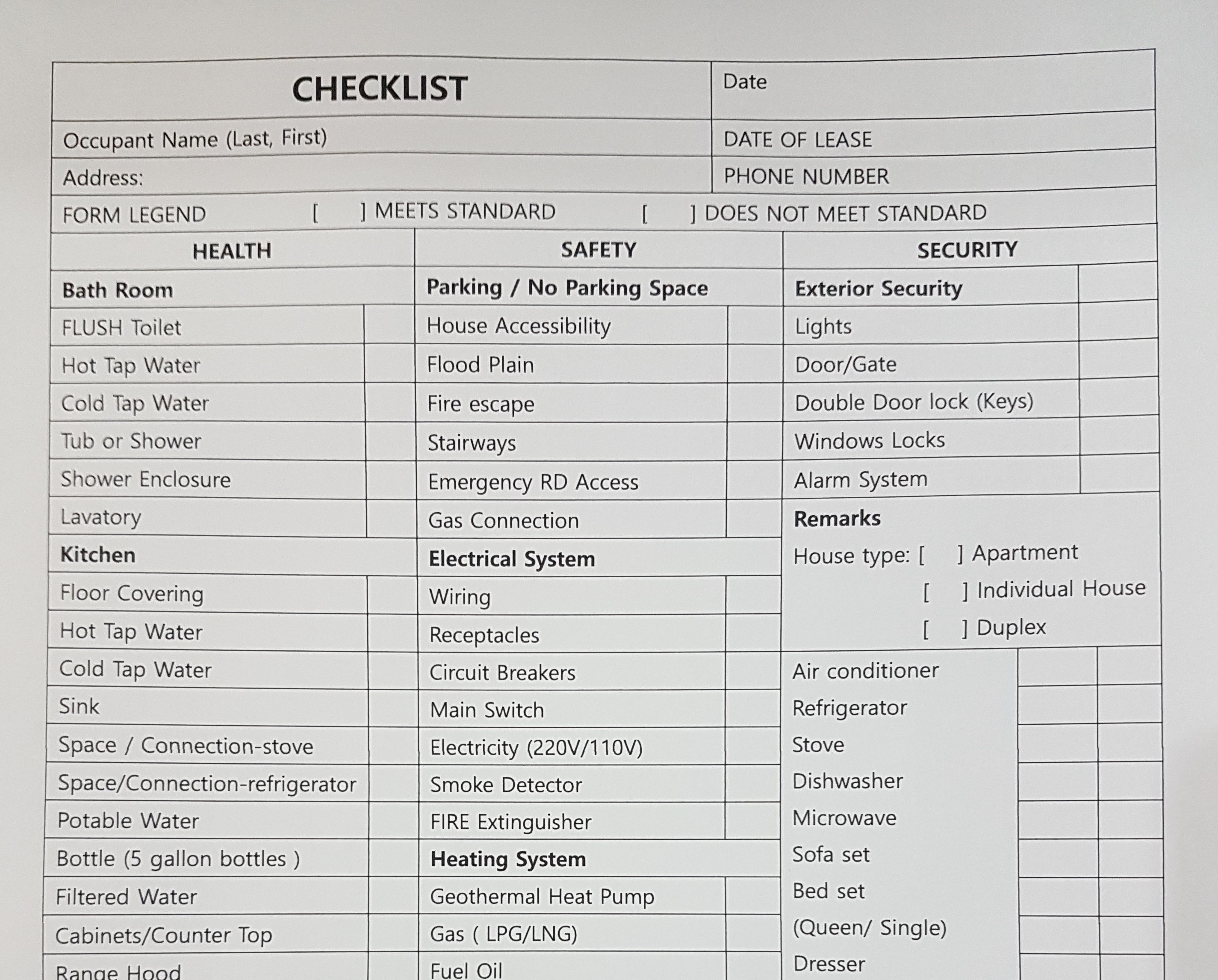 Inspection Check List - Eng