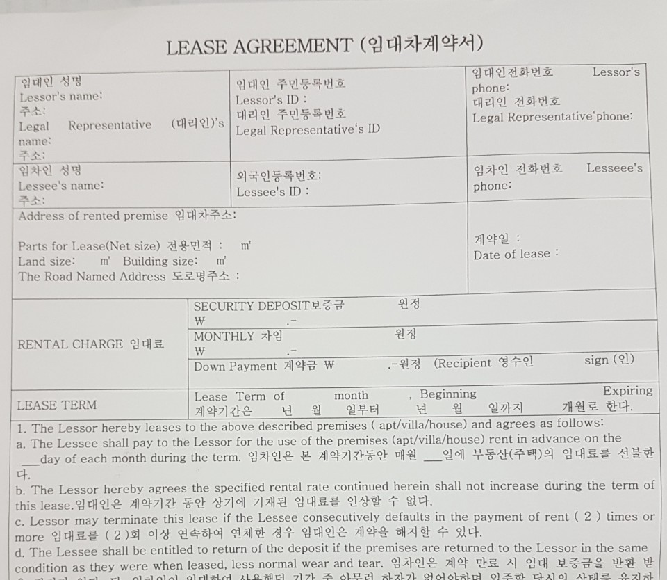 LEASE AGREEMENT_P.O.A._English & Korean _ 2P