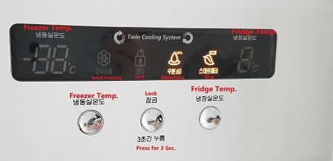- It changes the temperature of the freezer by pushing the “냉동실” button.