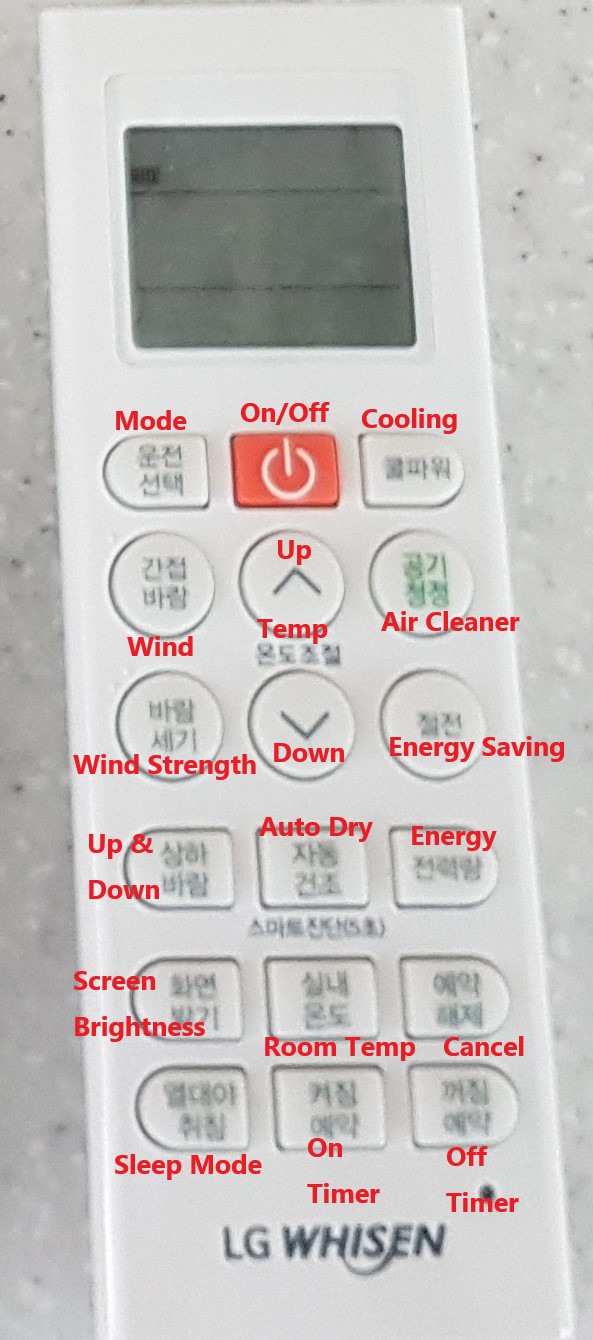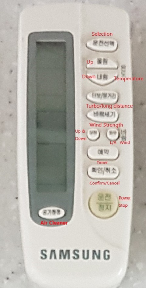 - Make sure to keep the function is set on “냉방” (naengbang) during the summer time.